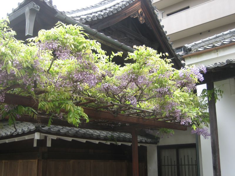 ■祭神と藤棚 社伝では天智天皇の御代に藤原鎌足が一堂を創建し、紫色の藤を植え藤寺と号したことに始まるという。崇徳(すとく)天皇はこの藤を好まれ、堂塔を修造して、寵妃である阿波内侍(あわのないし)を住まわした。崇徳上皇が讃岐で崩御された後、阿波内侍は上皇より賜った自筆の御尊影を観音堂に祀ったという。後、大円法師が御堂にお籠りされた時、崇徳上皇がお姿を現わされたという。